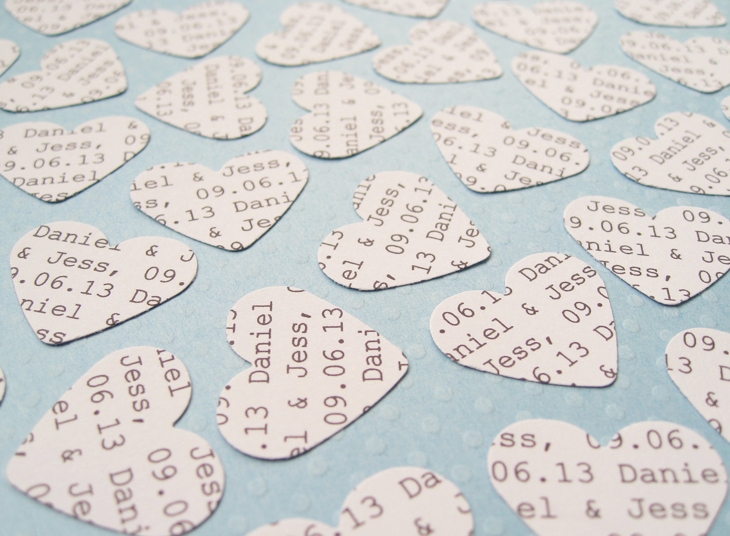 The personal details that you put into your Wedding really make the day special, which is why I love these simple personalised confetti hearts. They are perfect for flower girls petals, confetti, as table decor, scattered around centre pieces, can be put into the envelopes of invitations or sprinkled in favours to add that extra touch.